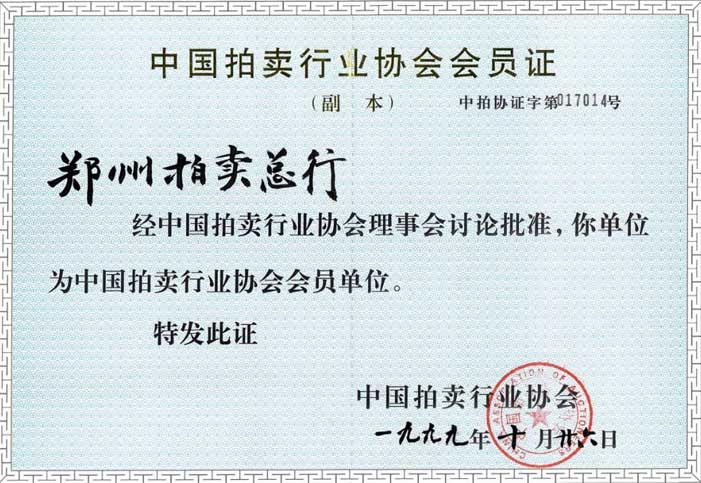 中國拍賣行業協會會員(yuán)證