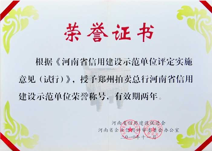 河(hé)南(nán)信用建設榮譽證書